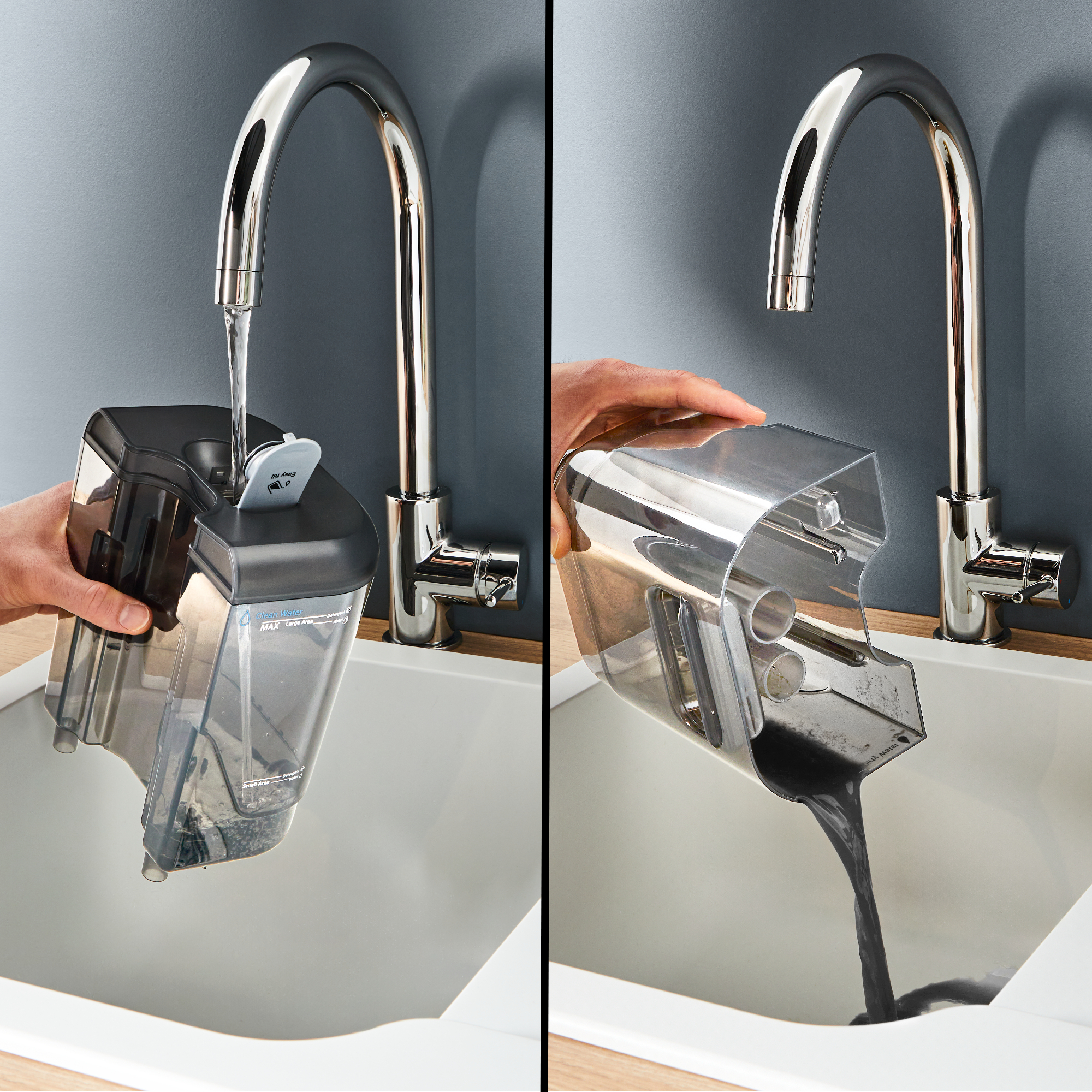 Kolay temizlik ve kolay doldurma, çıkarılabilir 2,3 L temiz su haznesi ve 1,5 L kirli su haznesi uzun süreli temizlik seansı sunar.