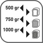 500 gramdan 1 kg'ya kadar küçük ya da büyük atıştırmalıklar. Kabuk rengini az kızarmıştan çok kıtır ekmeklere kadar ayarlayabilirsiniz.
