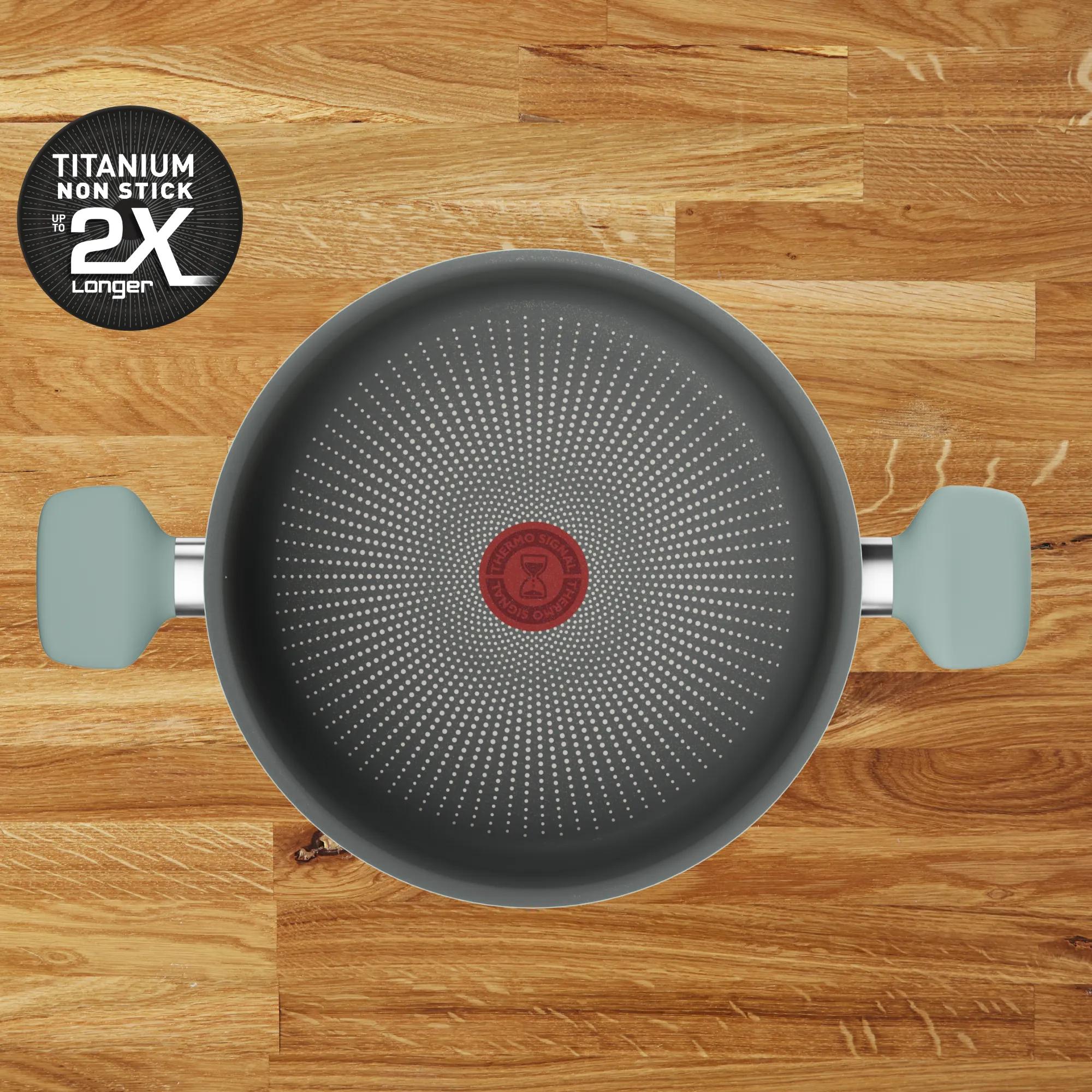 Günlük kullanıma dayanacak şekilde tasarlanmıştır; Tefal’in standart kaplamasına göre 2 kata kadar daha uzun ömürlü yapışmaz performans sunar