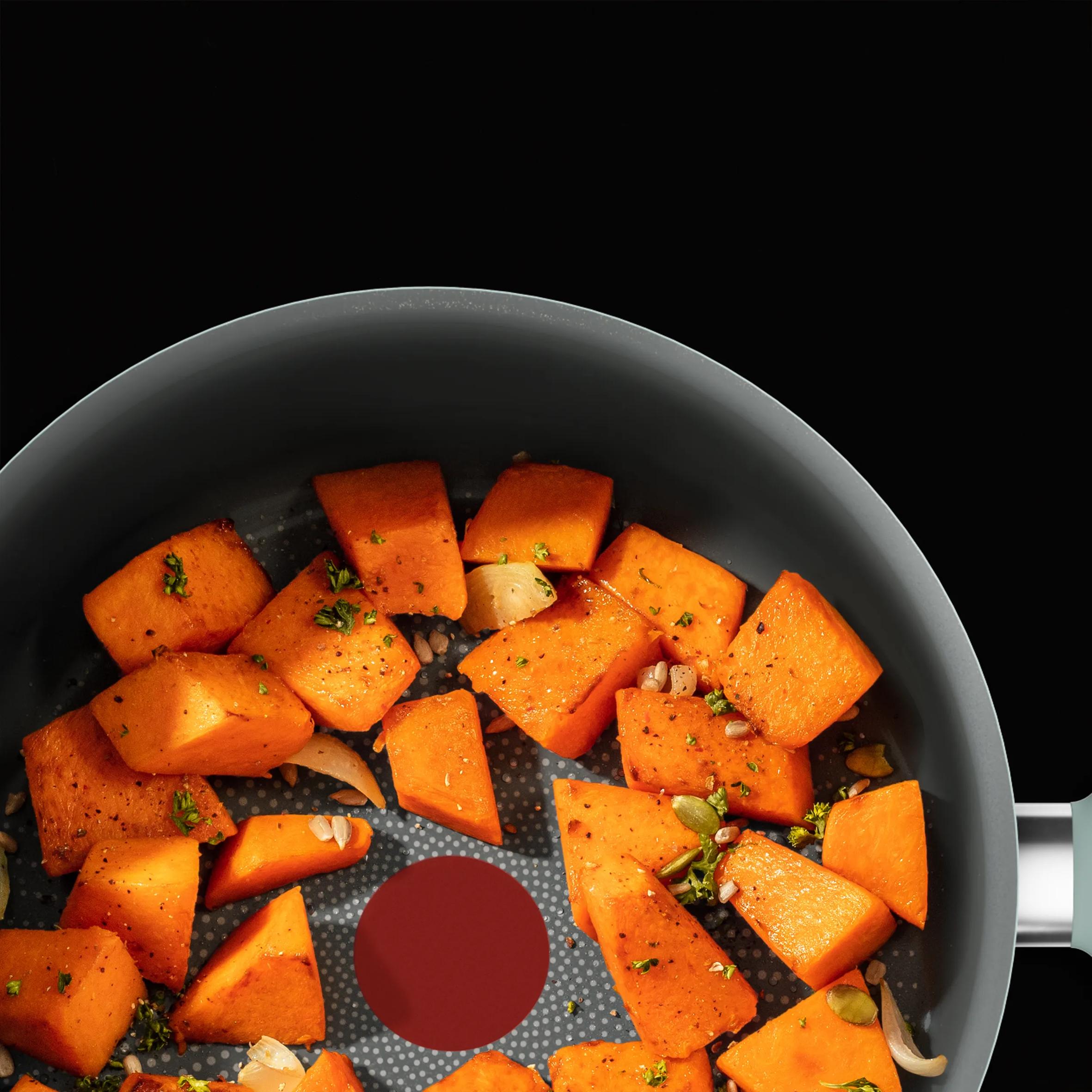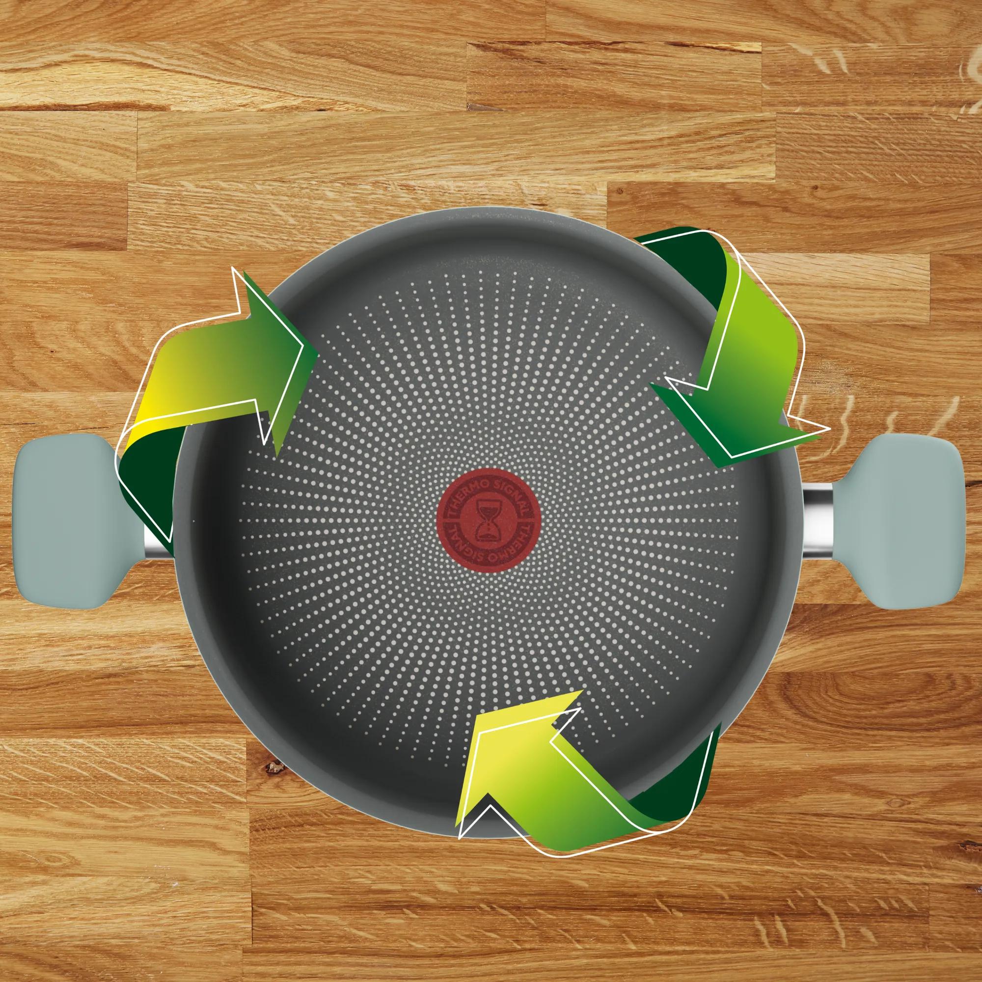 Geliştirilmiş Thermo-Signal™ teknolojisi, tava ideal başlangıç sıcaklığına ulaştığında tamamen kırmızıya döner ve mükemmel sonuçlar sağlar
