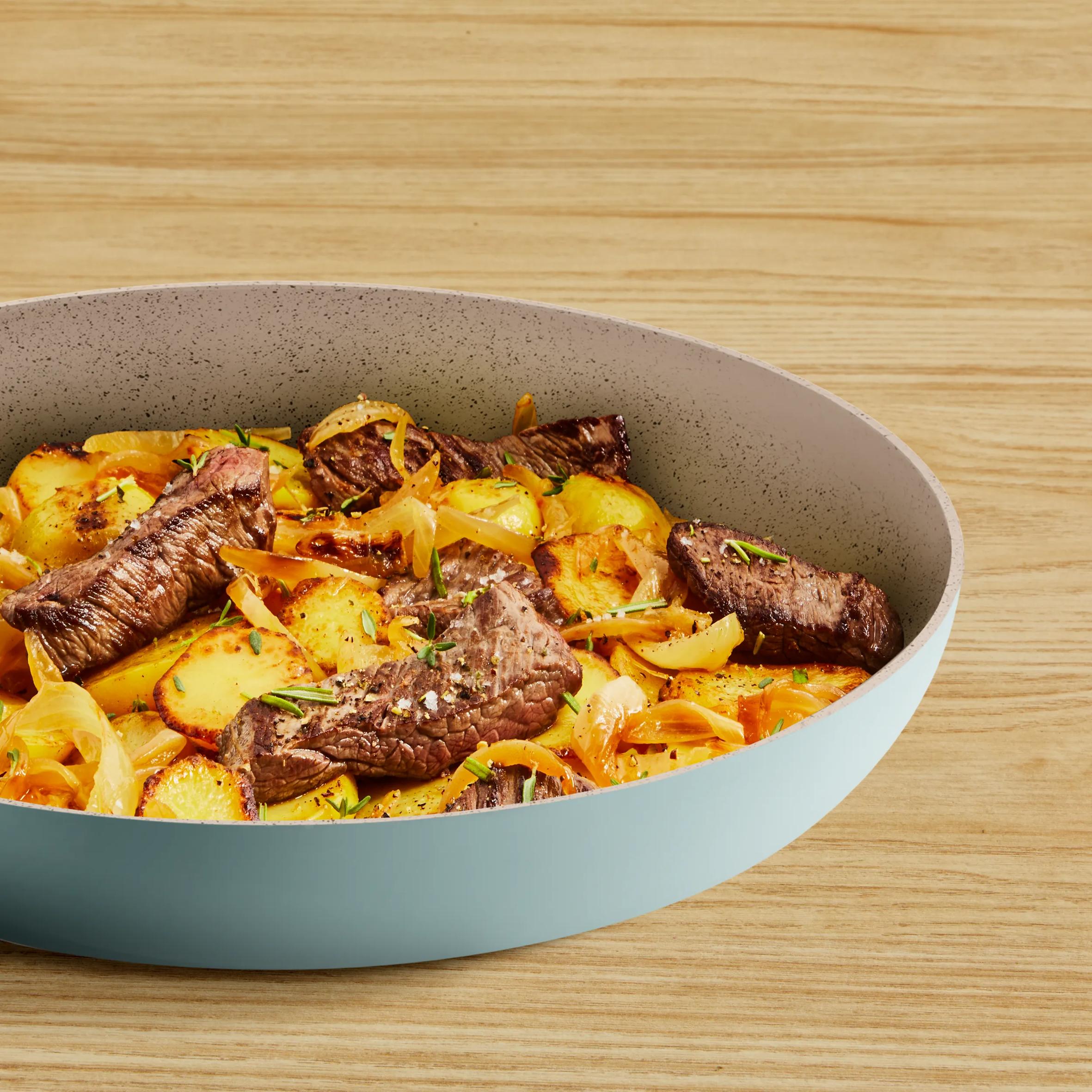 Minerallerle zenginleştirilmiş Mineralia+ dirençli yapışmaz kaplamamız, mükemmel kayma ve az yağlı kolay pişirme sağlar.