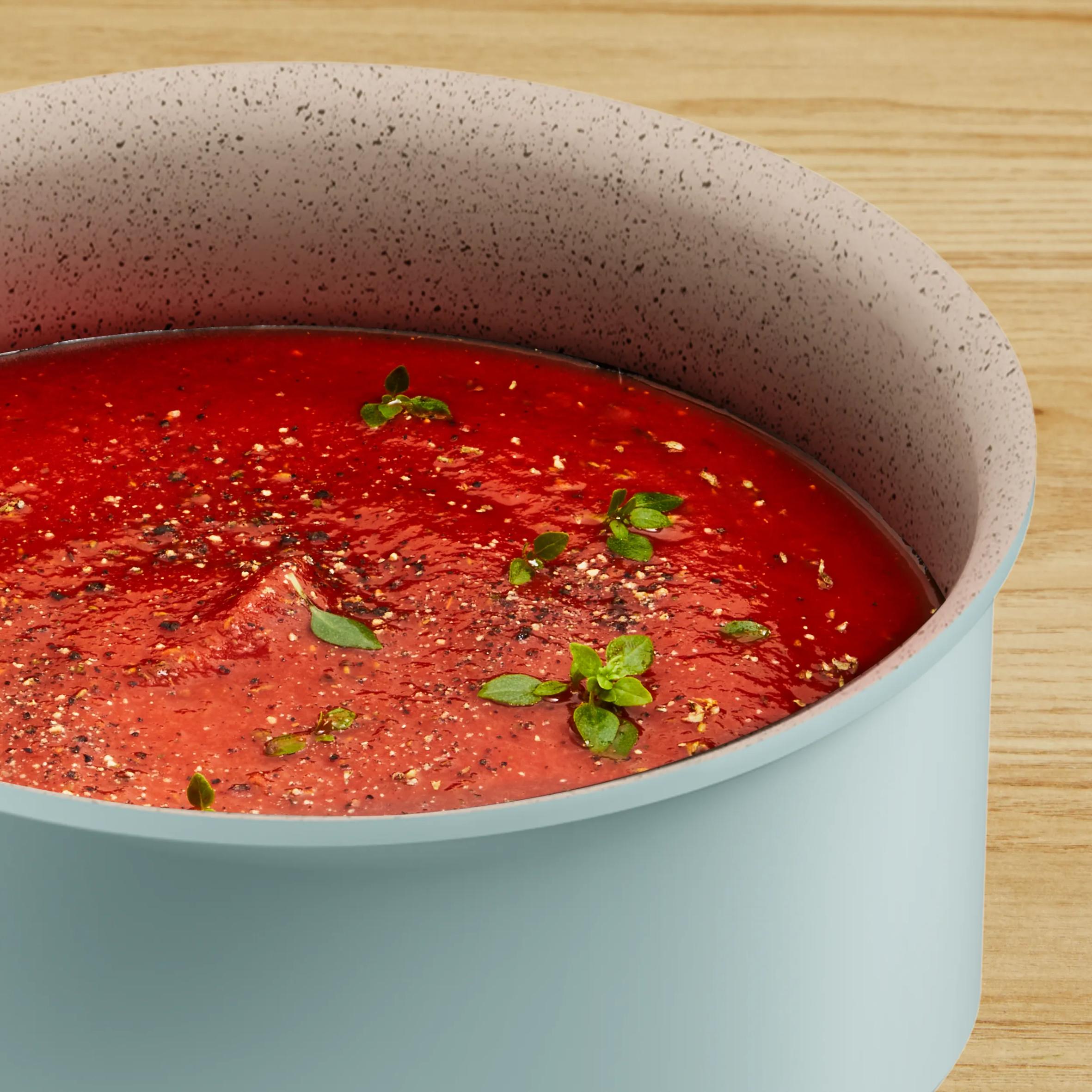 Minerallerle zenginleştirilmiş Mineralia+ dayanıklı yapışmaz kaplama, mükemmel kayganlık ve az yağlı, kolay pişirme sağlar.